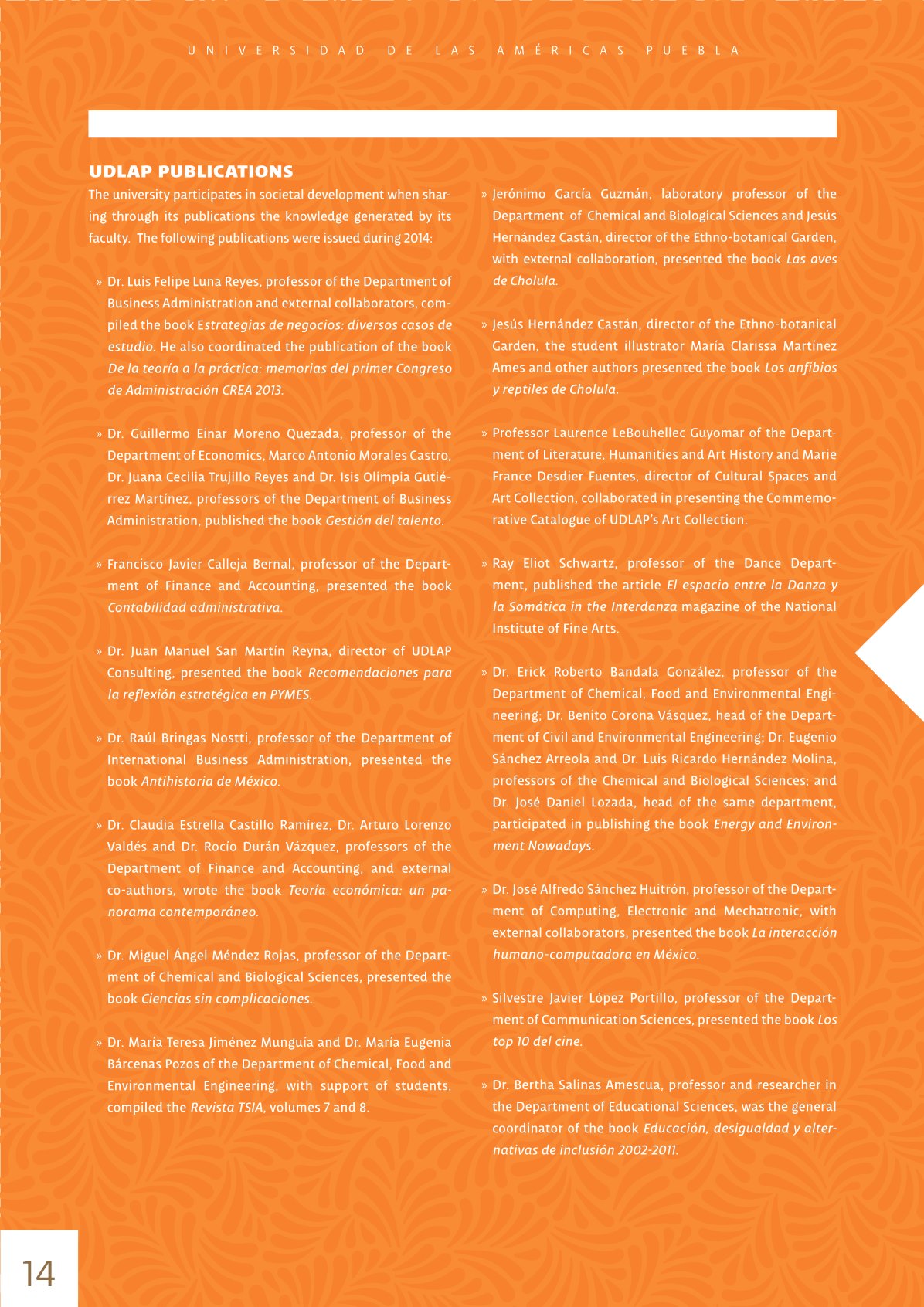 UDLAP - Report of Activities 2014 - 2015 - page 14