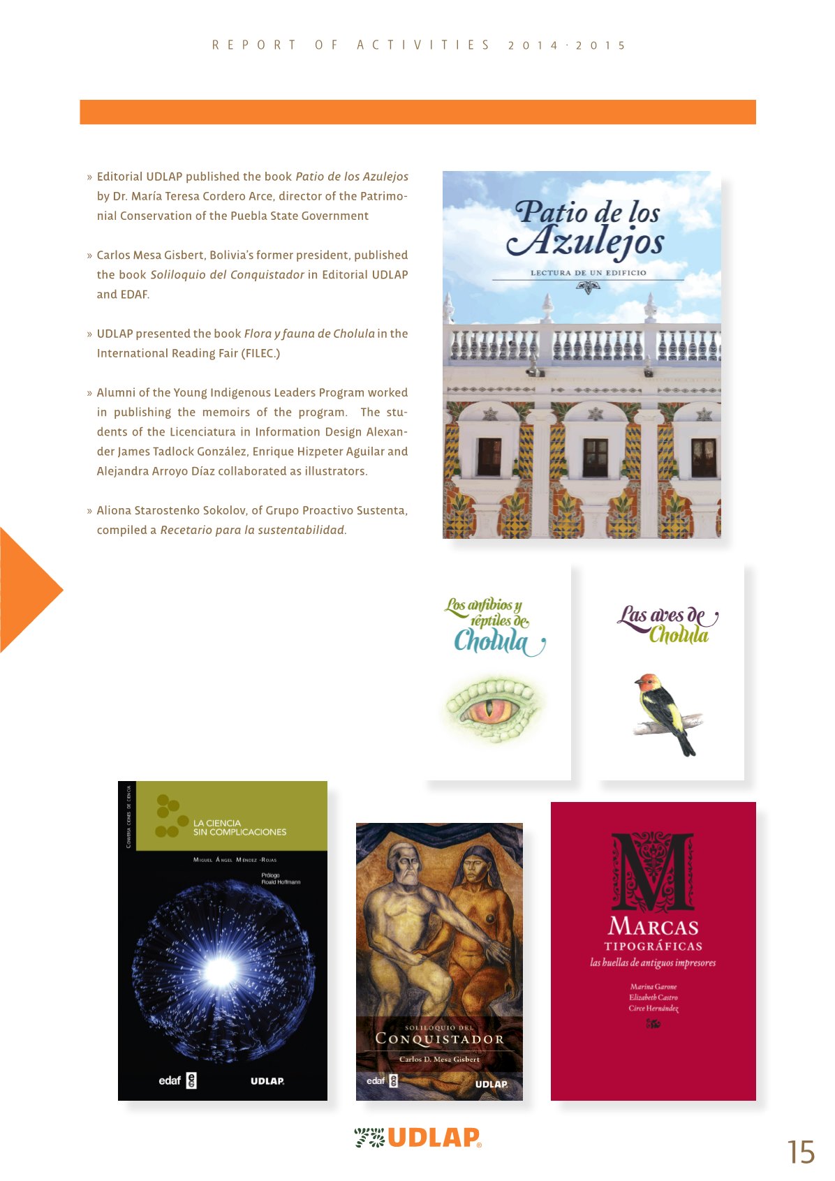 UDLAP - Report of Activities 2014 - 2015 - page 15