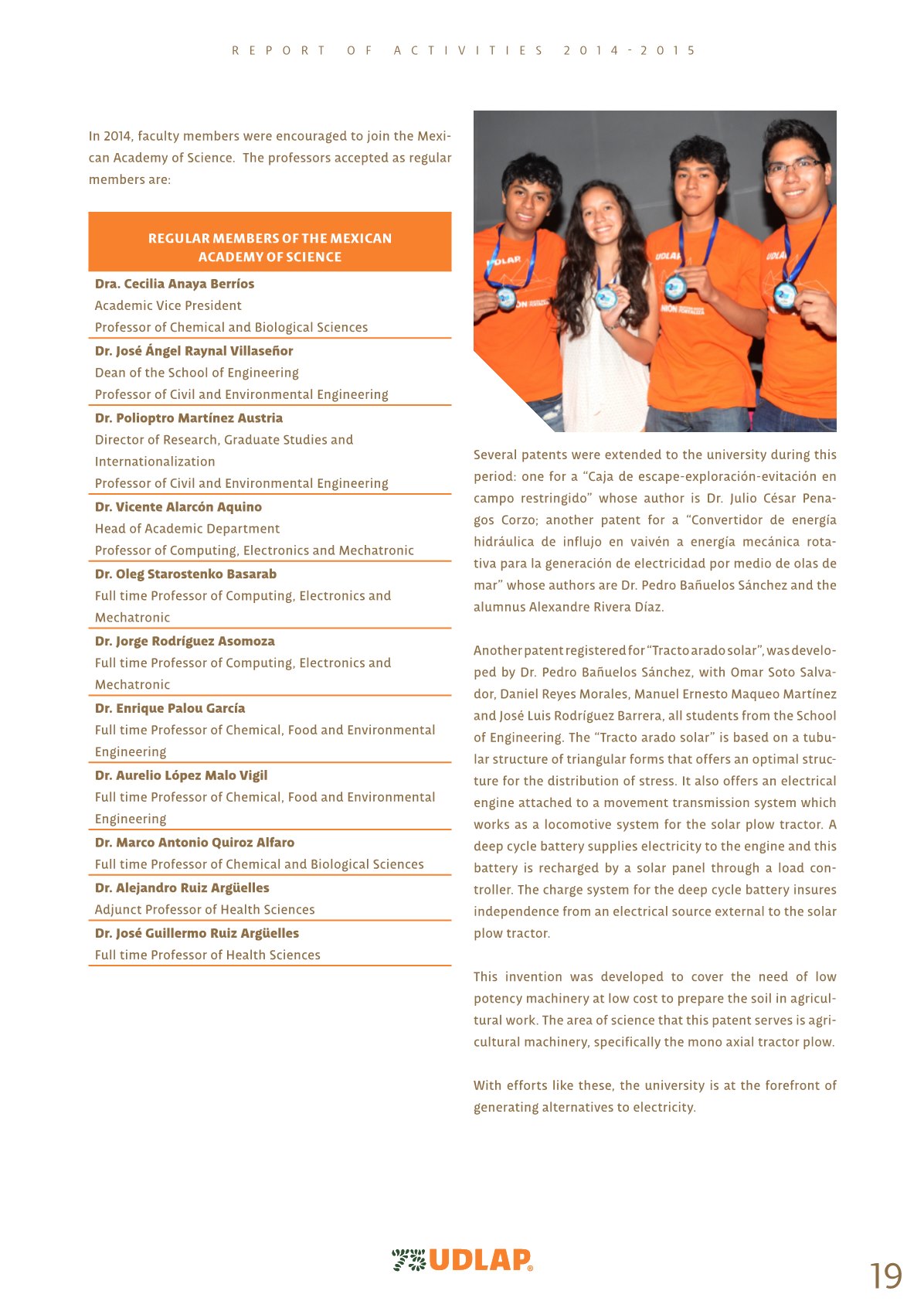 UDLAP - Report of Activities 2014 - 2015 - page 19