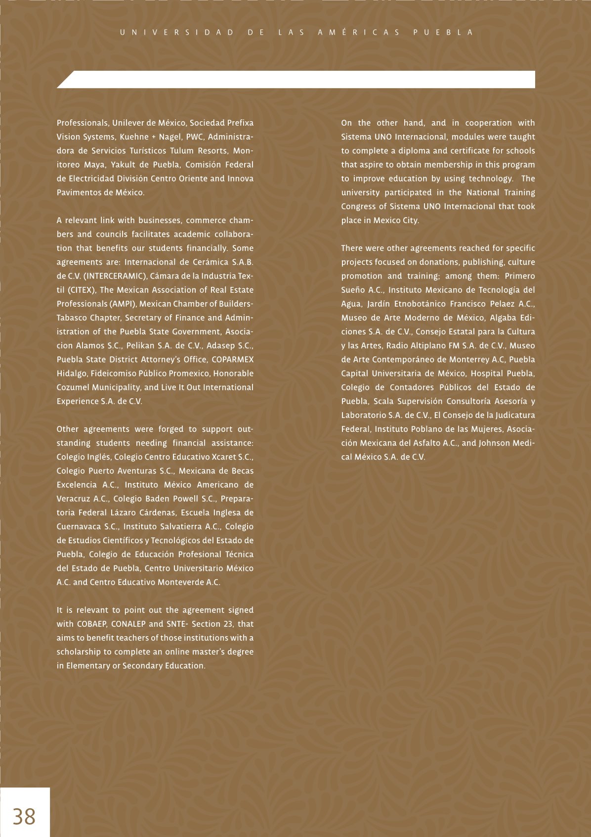 UDLAP - Report of Activities 2014 - 2015 - page 38