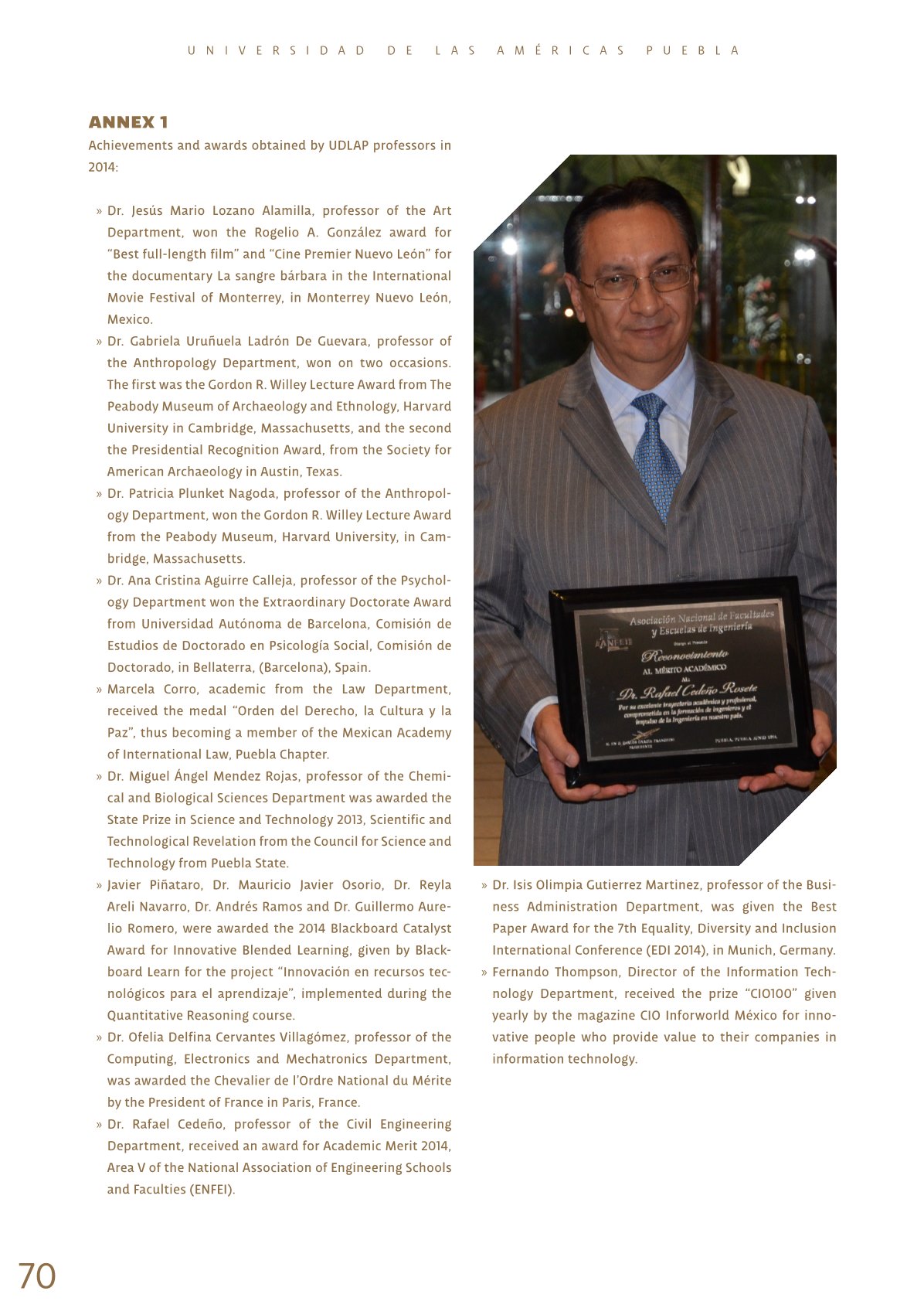 UDLAP - Report of Activities 2014 - 2015 - page 70