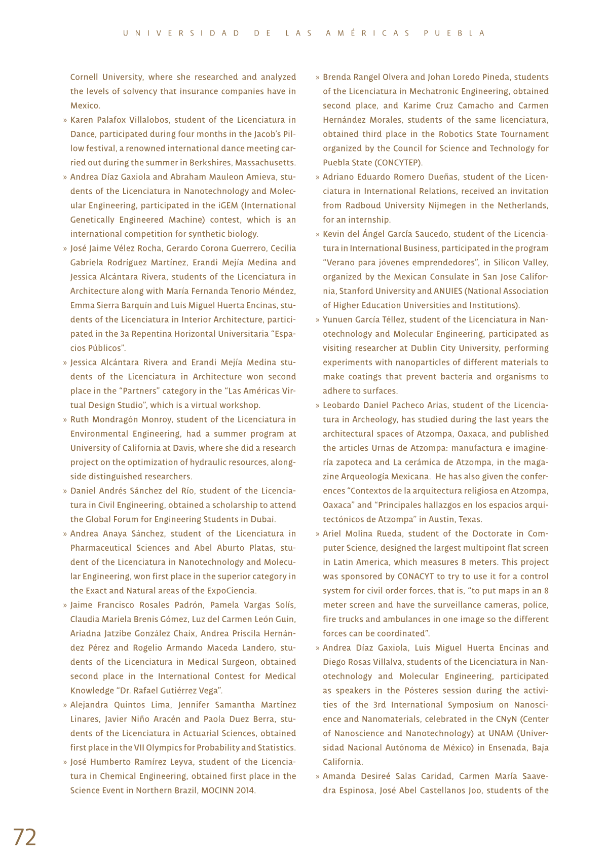 UDLAP - Report of Activities 2014 - 2015 - page 72